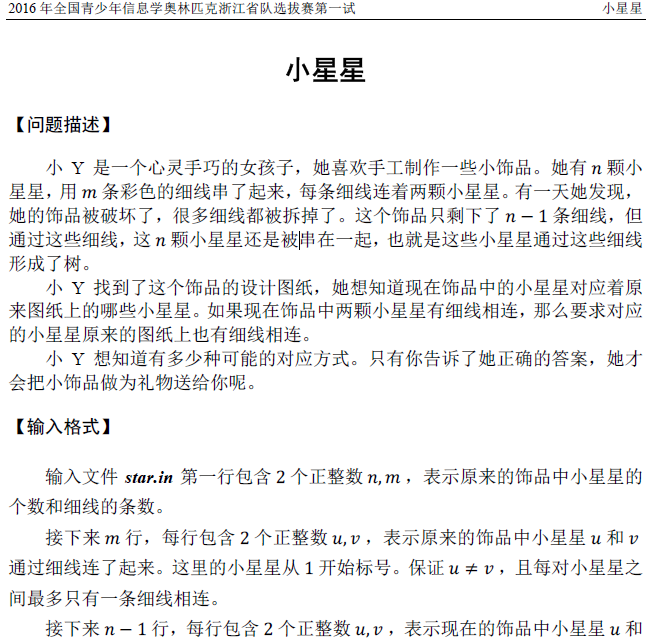 | 题目名称 | 1977. [ZJOI 2016]小星星 |