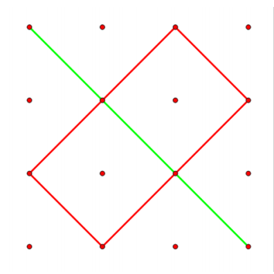 有一个 $n$ 行 $n$ 列的正方形点阵,左上角点坐标为 $(1, 1)$,右下角点坐标为 $(n, n)$。